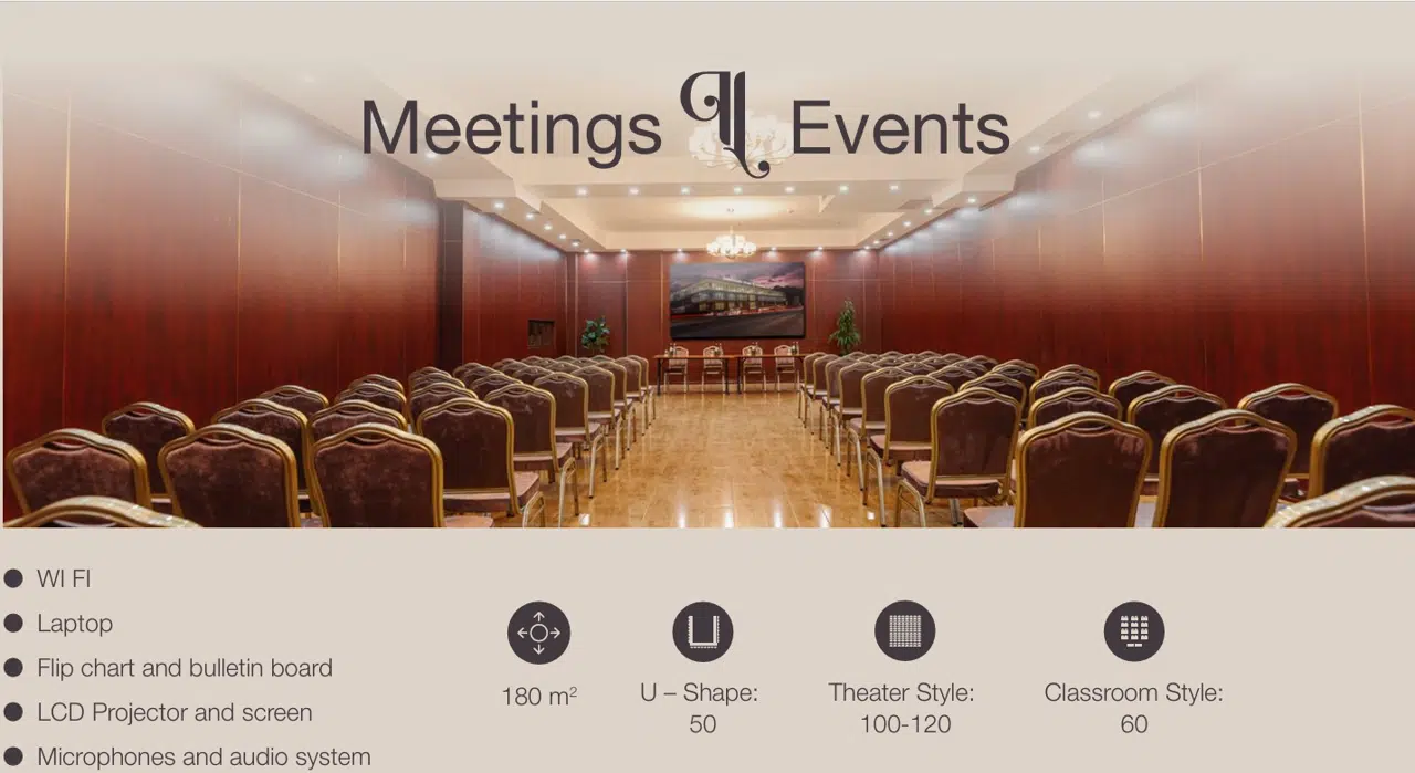 Equipped with modern technologies, this 180 sq.m. space gives you an opportunity to turn your meeting into a celebration.